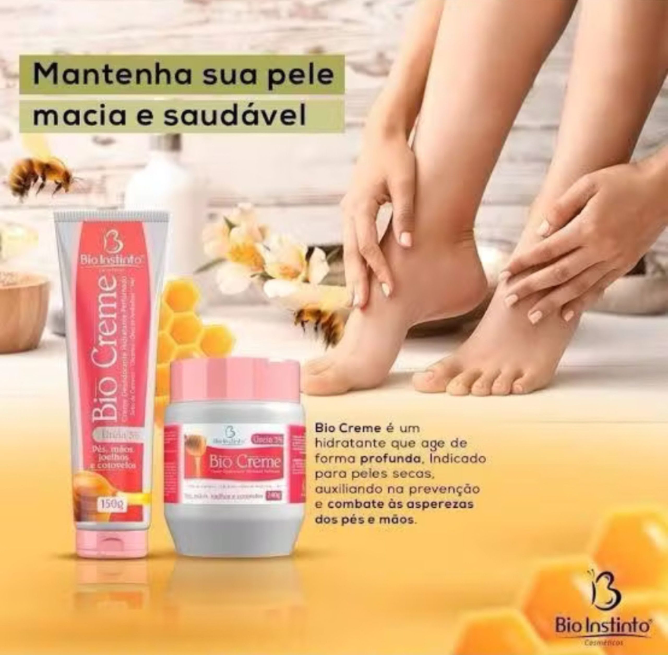 O Creme Desodorante Hidratante Perfumado Bio Creme Bio Instinto é especialmente indicado para pele seca. Possui uma formulação equilibrada, com sebo de carneiro, glicerina, óleo de amêndoas e mel, capaz de hidratar, prevenir e combater asperezas da pele dos pés, mãos, joelhos e cotovelos, deixando-os macios, sedosos e perfumados.